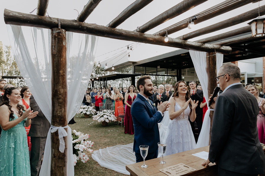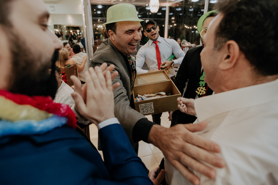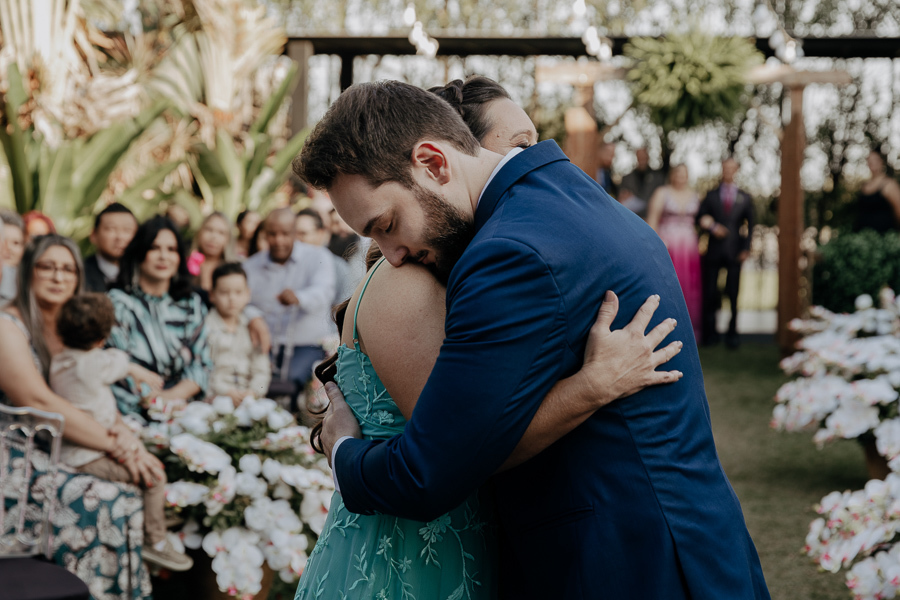 Chegando o grande dia, não poderia ser diferente! Vivemos ele intensamente, junto com esse casal super especial. E enquanto escrevia esse texto percebi uma coisa maluca: nós, fotógrafos, temos o melhor camarote possível para assistir um casamento. Somos o único fornecedor que participa de TODOS os momentos do casal, desde a preparação dos noivos até a foto com os sobreviventes da balada. Estamos mais próximos do casal do que seus pais e amigos mais próximos. Por mais tempo que eles, e mais próximos de tudo que está acontecendo. Parando pra pensar, além de responsáveis por registrar tudo, somos aqueles que mais vivem esses momentos inesquecíveis com o casal. Doido né?
