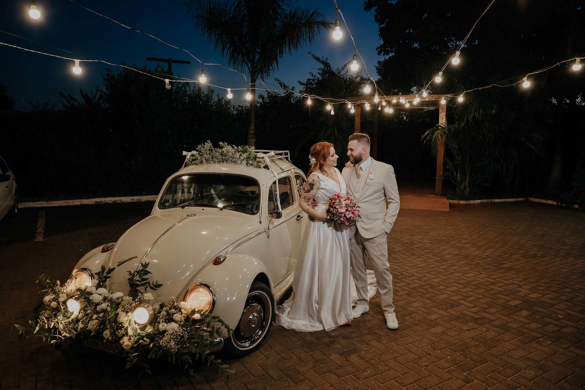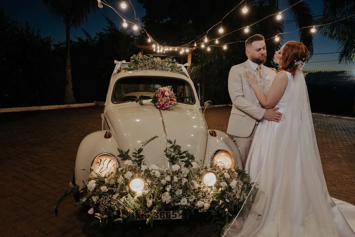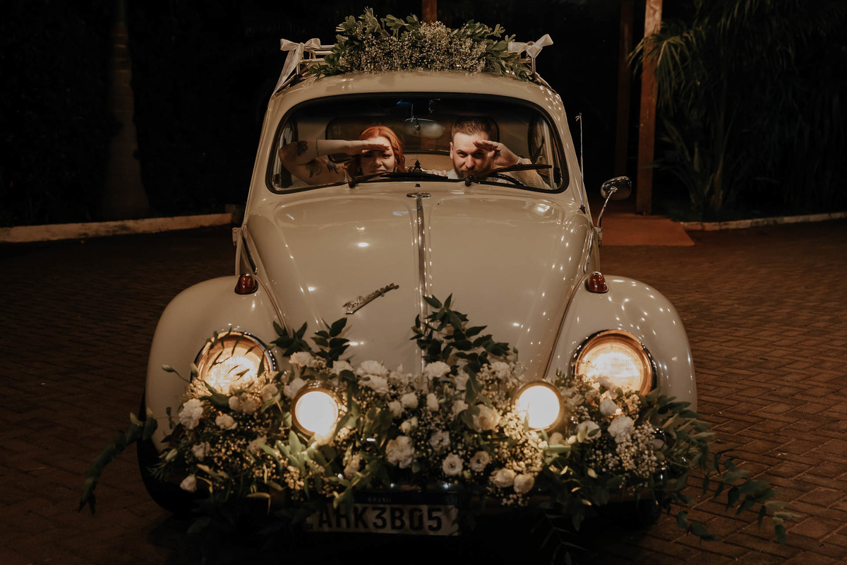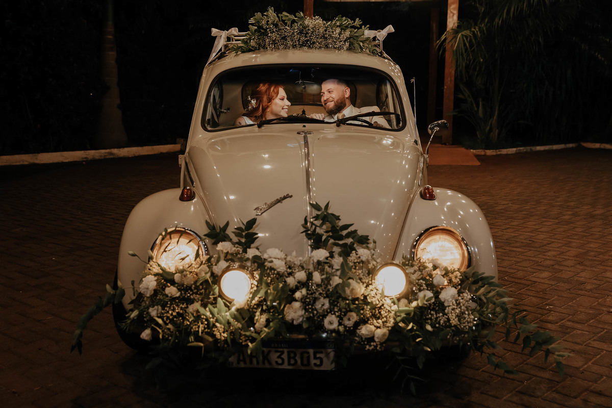 Outra participação especial foi a do fusquinha do tio Luiz, que bombou muito! Ele estava todo enfeitado, e depois de usarmos para umas fotinhas do casal, foi o veículo de entrada no salão de festa e ainda usado como cabine fotográfica dos convidados! Eu disse que bombou pô!