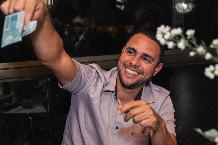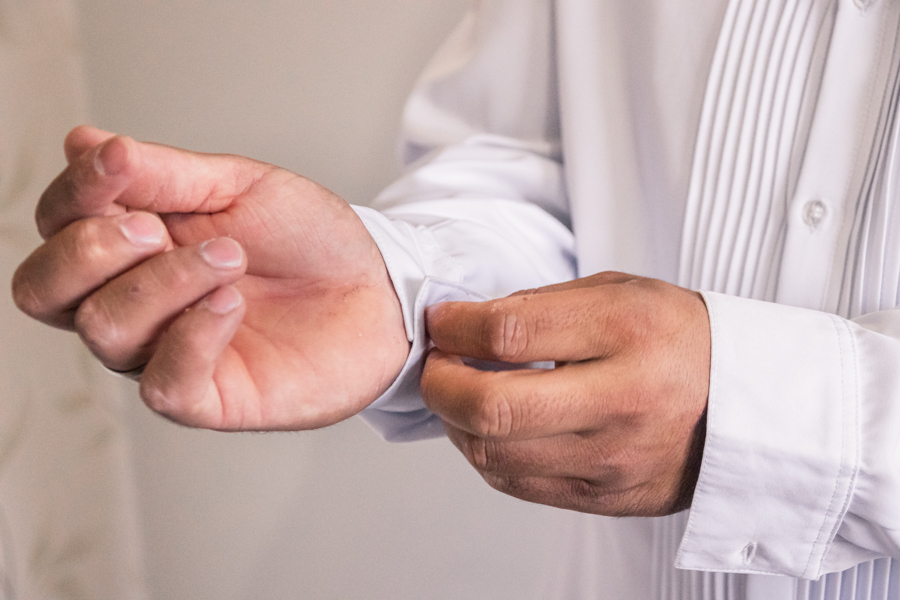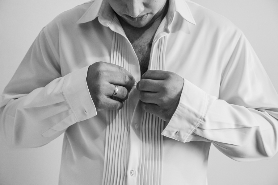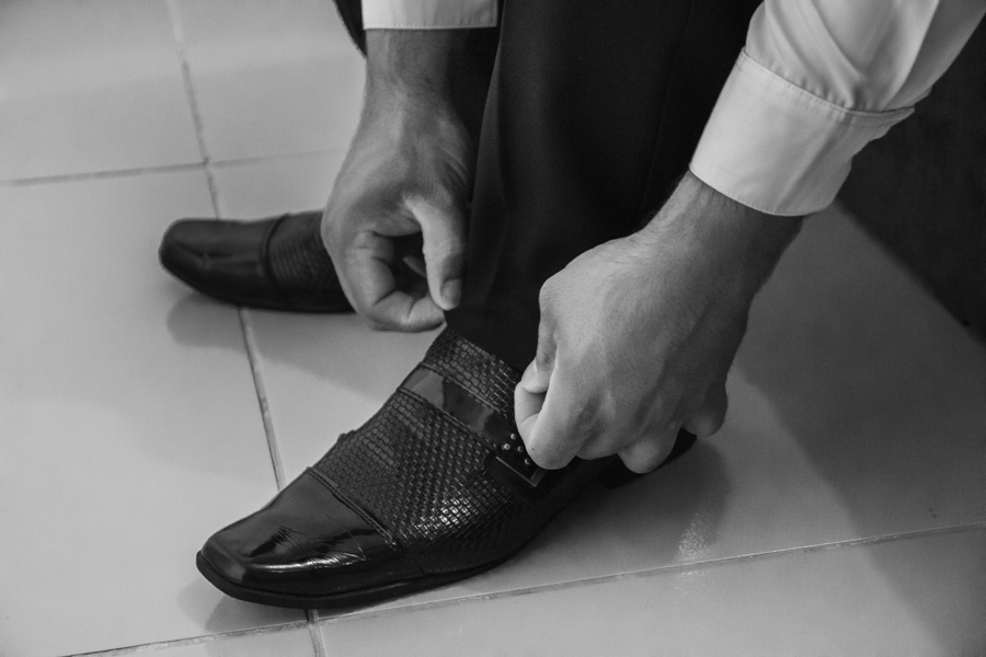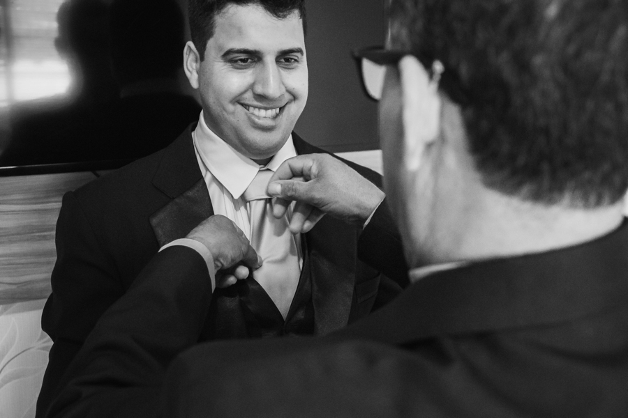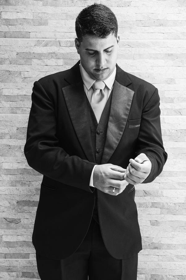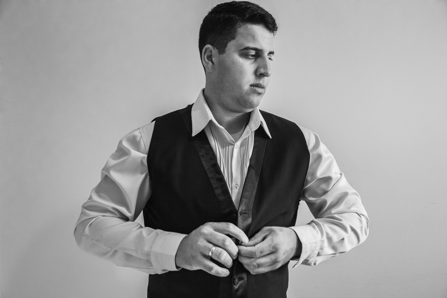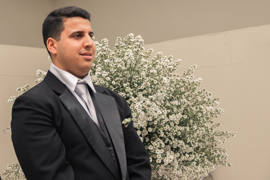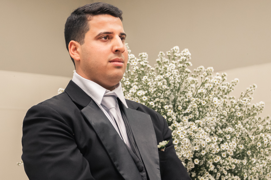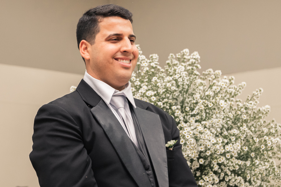 O noivo, estava aparentemente apreensivo, mas mantendo a pose de "homão". Porém sempre nos tratando muito bem e cooperando com as nossas ideias. Então o making of dele foi tranquilão.