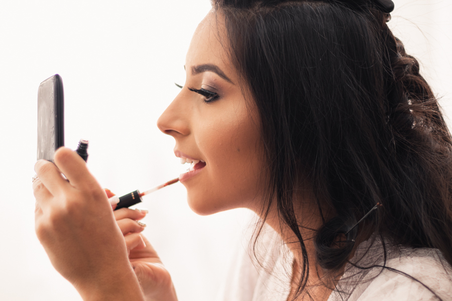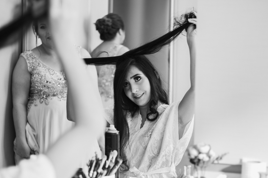 Ela trabalha em um salão de beleza, então por que não arrumar a todas as madrinhas, mães, daminhas... e ela mesma também! Maquiagem e penteado. A maratona começou as 07:00 da manhã! Que ideia maluca né?