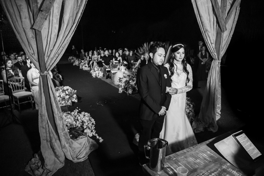 Não vou mentir, tivemos um imprevisto daqueles nesse casório! Era para a cerimônia começar as 18:00, no por do sol. Por complicações a parte, acabou começando apenas as 19:30! :O