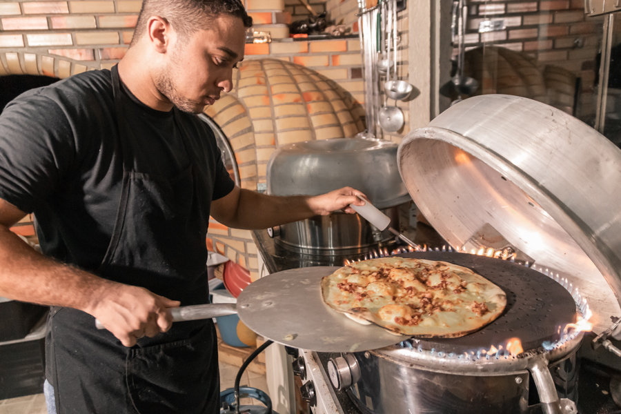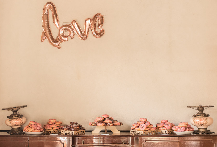 Ao invés da tradicional mesa de doces finos, por que não um monte de donuts coloridos? Buffet? Não não, aqui entrou muito melhor um baita rodízio de pizza.