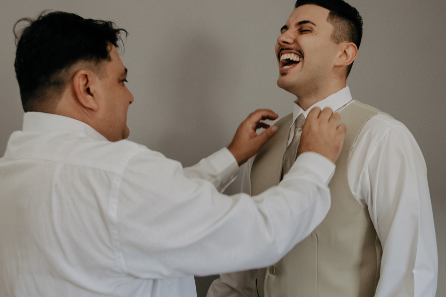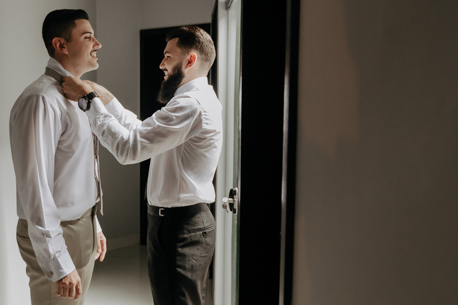 A gente sente quase que imediatamente como será o dia quando chegamos nos making ofs, e com eles não podia ser diferente. Estavam brincando, dando risada e se emocionando. Tudo muito intenso e feliz desde a preparação.